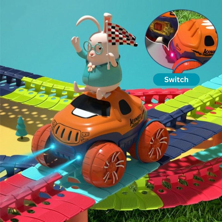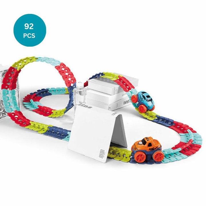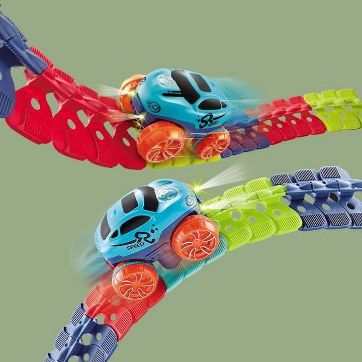 Limitless Track Possibilities: Unleash the full potential of creativity with our excellent track that can bend, twist, and even illuminate the way for the racing cars. Quickly build tracks on any object, from furniture to bottles and boxes, allowing children to create countless layouts and ignite their imagination.