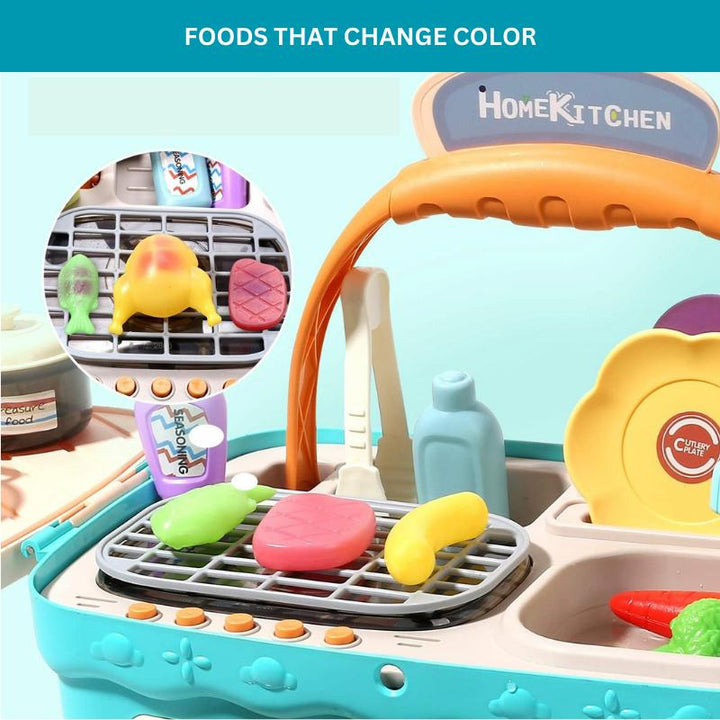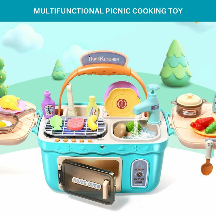 Endless Pretend Play Possibilities: Immerse your child in the world of culinary creativity with our Picnic & Kitchen Toy Set. Packed with mini pots and pans, cooking utensils, and color-changing play food, this set adds a new dimension to pretend play, making it an absolute joy for your little chef.
