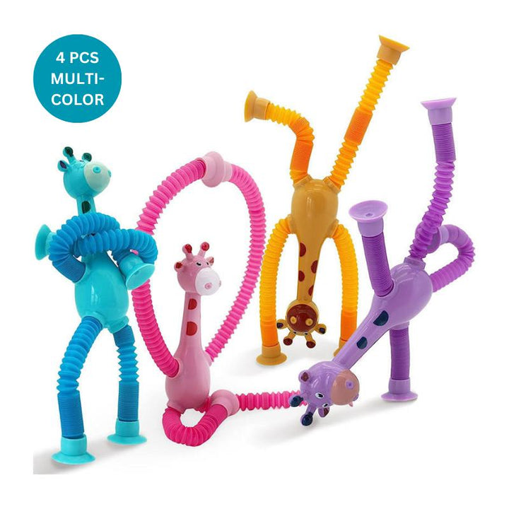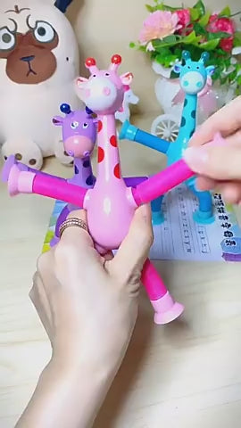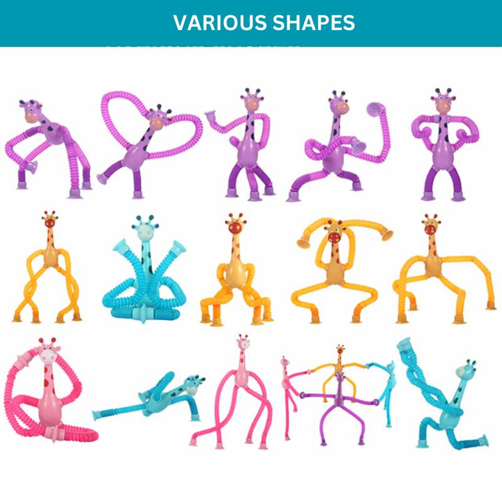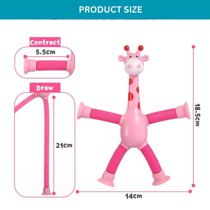 Stick Anywhere with Suction Cups: Equipped with suction cup mounts, these fidget toys can stick to any flat surface. The giraffe's cute animal body wrapped around the ends of the tube adds a touch of beauty while ensuring the safety of your children. Pop, stretch, and rotate the toy for endless amusement.
