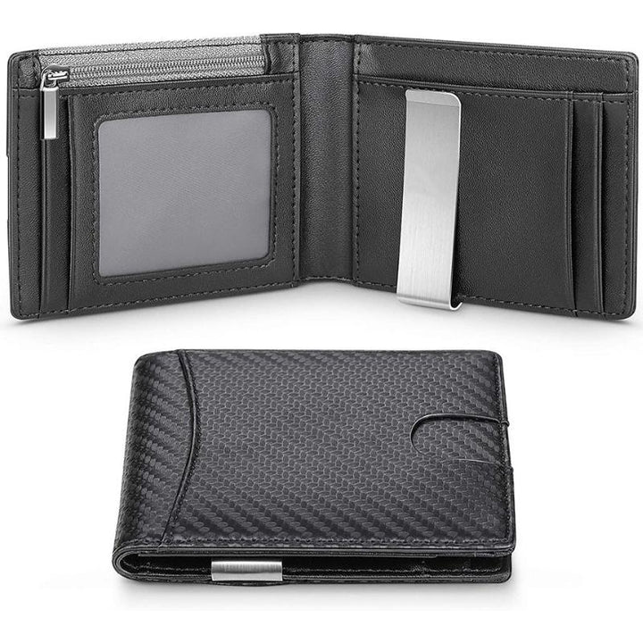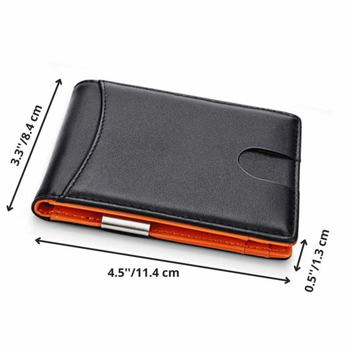 This minimalist wallet features one slots that provide easy access to your most frequently used cards. Inside the wallet, there is an ID card slot and 6 slots to place your other cards (driver's license, insurance card, ID card, etc.) A metal money clip is also integrated into the wallet to place your money.